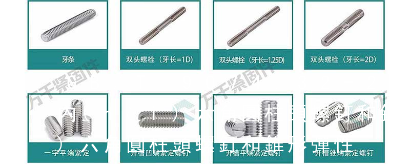 6.內(nèi)六角花形圓柱頭螺釘7.內(nèi)六角沉頭螺釘8.內(nèi)六角圓柱頭頭螺釘9.內(nèi)六角平圓頭螺釘10.十字頭螺釘2.4.3 緊定螺釘1.開(kāi)槽錐端緊定螺釘2.開(kāi)槽平端緊定螺釘3.開(kāi)槽凹端緊定螺釘4.開(kāi)槽長(zhǎng)圓柱端緊定螺釘5.內(nèi)六角平端緊定螺釘6.內(nèi)